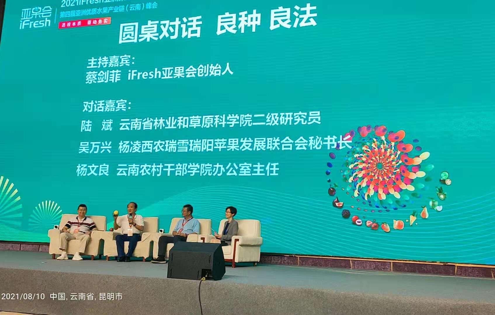 2021年8月9-10日,亚果会主办的2021第四届亚洲优质水果产业链峰会和亚洲果蔬产业博览会在云南昆明召开。中国果品流通协会副会长百果园董事长余惠勇、国家农产品保鲜工程技术中心主任张志军研究员、中国农业科学院果树研究所果品研究中心主任王文辉研究员、北京市林业果树科学研究院副院长张开春研究员、华南农业大学园艺学院副院长吴振先教授等十几位专家和百果园、京东、阿里巴巴、天猫等多位大企业家出席了会议。全国各地1000多人参加会议,杨凌西农瑞雪瑞阳苹果发展联合会受邀参加。